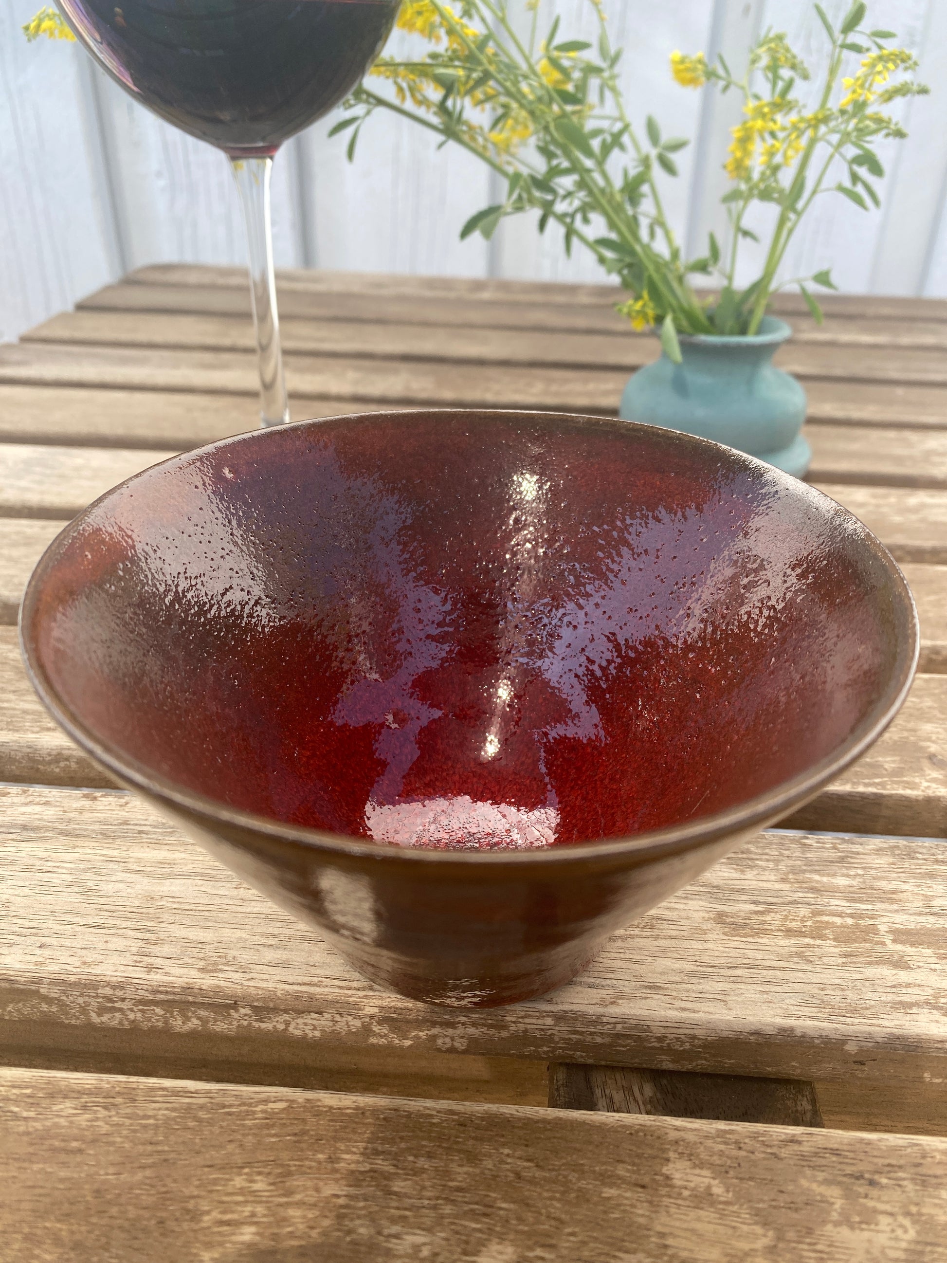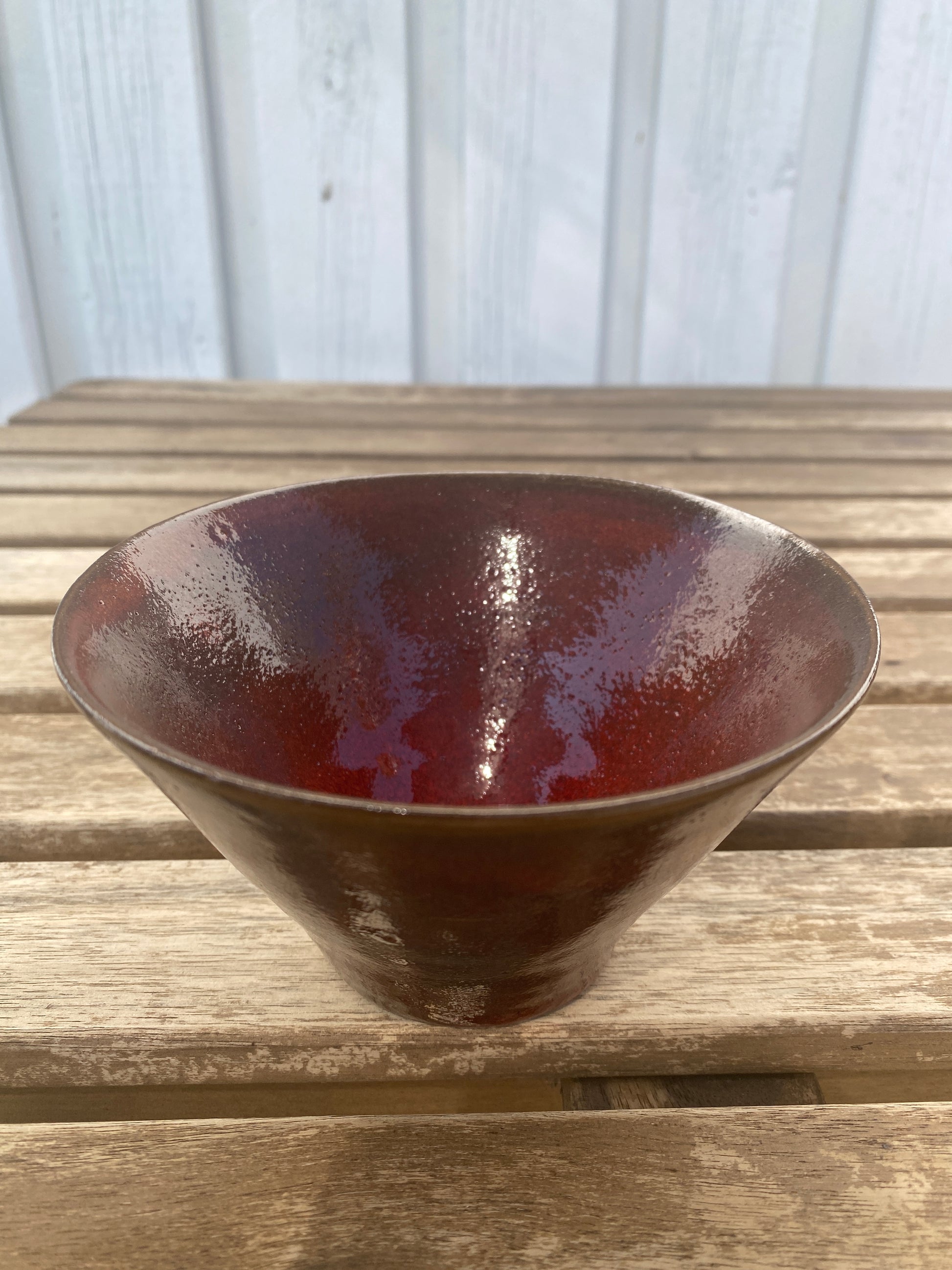 Skål med smal fod, rødbrun