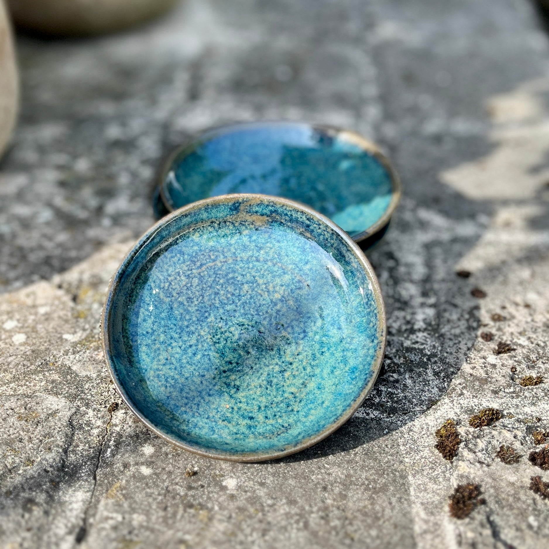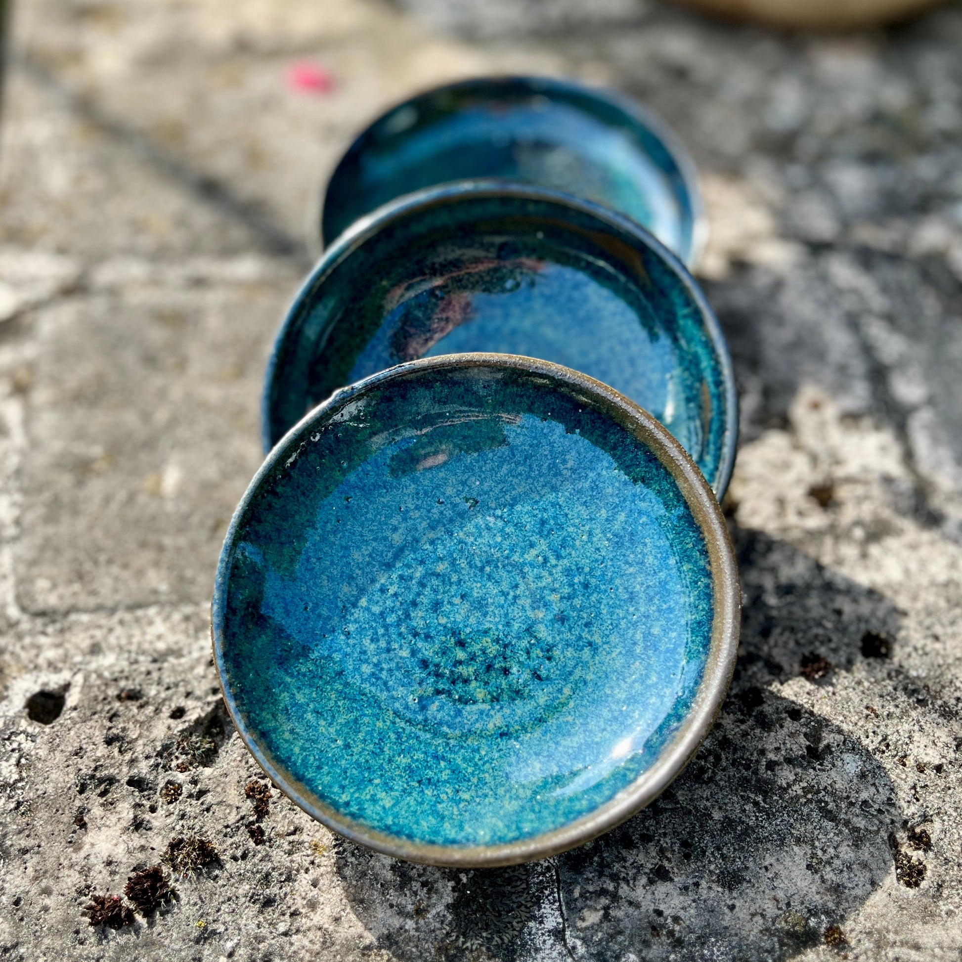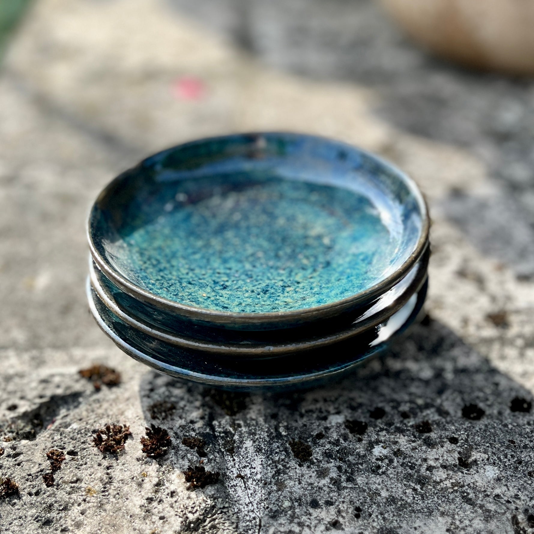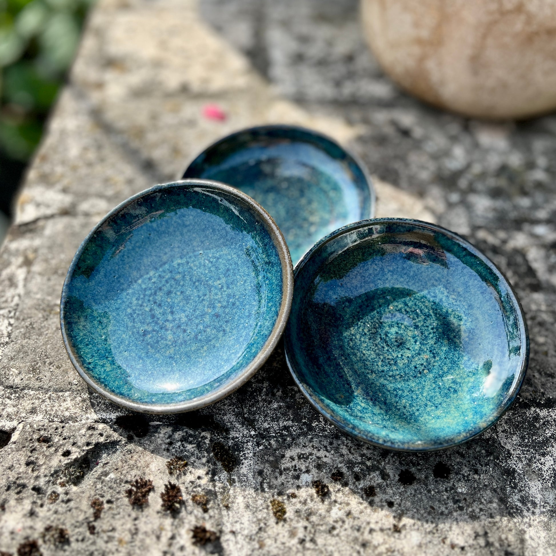 Lille blå skål på rødler med rå bund. Perfekte til olie, dip, oliven, nødder mm.